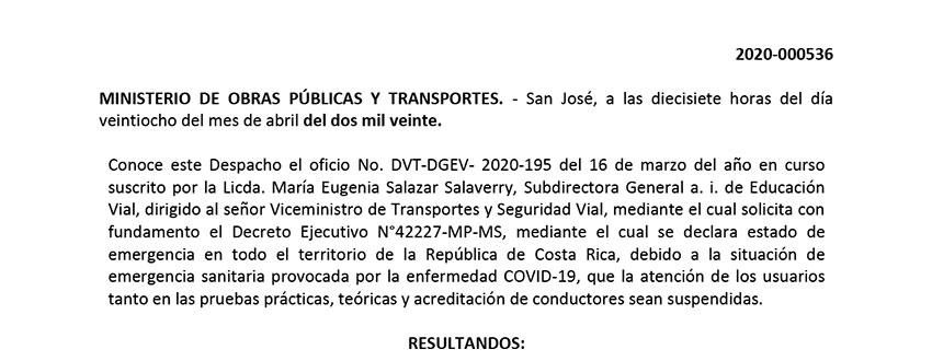 RESOLUCION 2020-000536 EDUCACION VIAL EXTENSIÓN DE PLAZO AL 15 de MAYO 2020